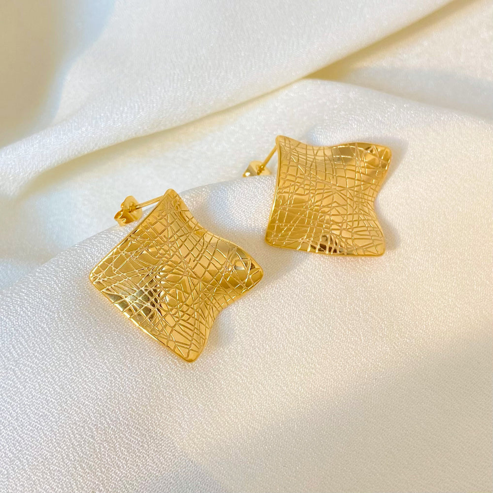 Introducing our stunning 18K Square Crease Stud Earrings - a luxurious and versatile addition to any jewelry collection! Crafted with waterproof and durable 18K Gold Plating, these Stainless Steel Square Crease Earrings are a must-have for any fashion-forward individual. Elevate your style and make a statement with these elegant and eye-catching stud earrings.